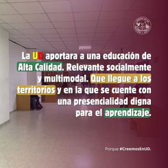 Creemos en UD, una Universidad que está al servicio de la comunidad a la que se debe, que cuida el recurso público en su carácter sagrado pero que también se preocupa por la tranquilidad y el bienestar de quienes la componen. Que piensa en el cuidado de sus estudiantes, egresados, profesores y administrativos.